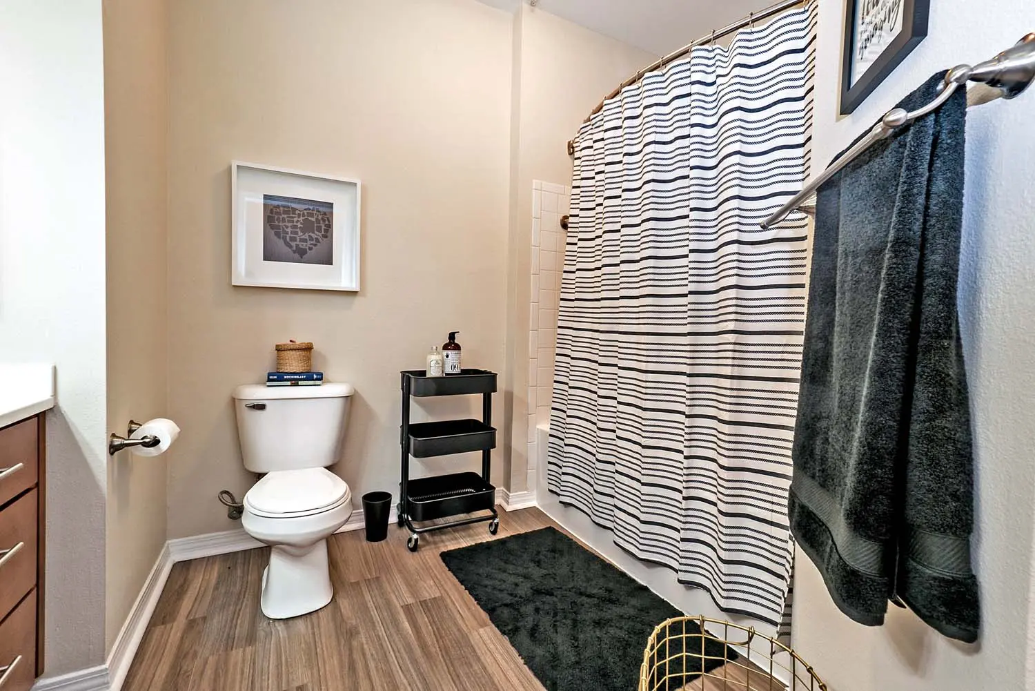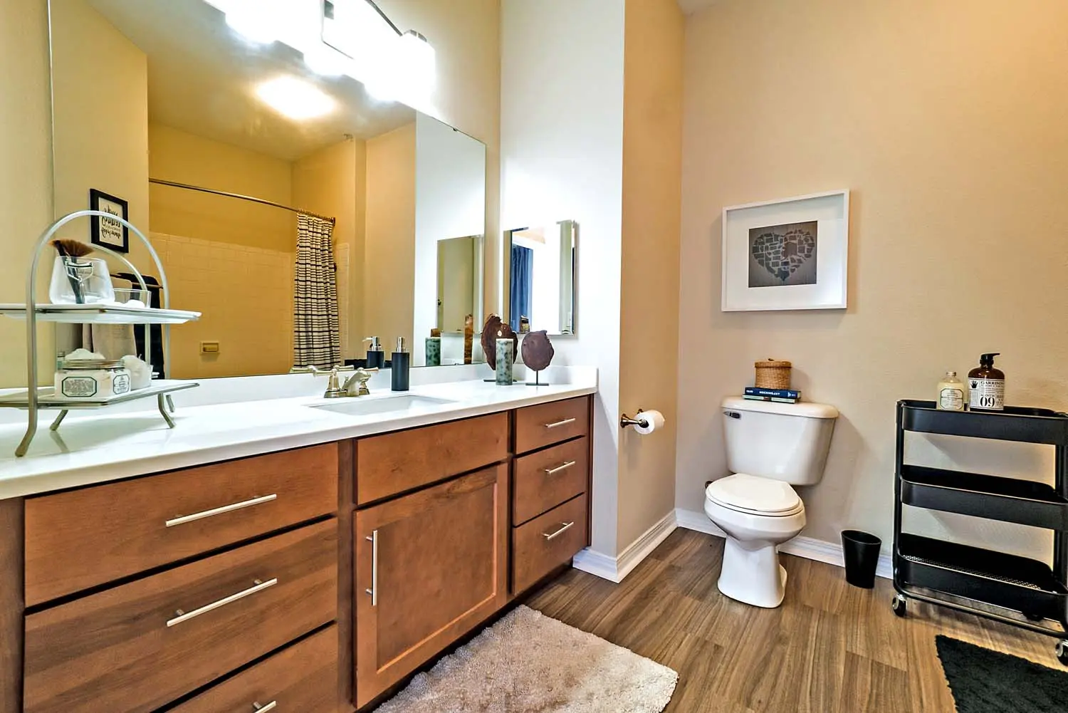 - Trendy Laminate Plank Flooring in Kitchen & Bathroom